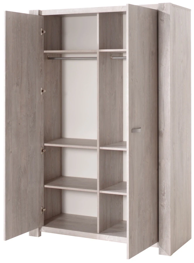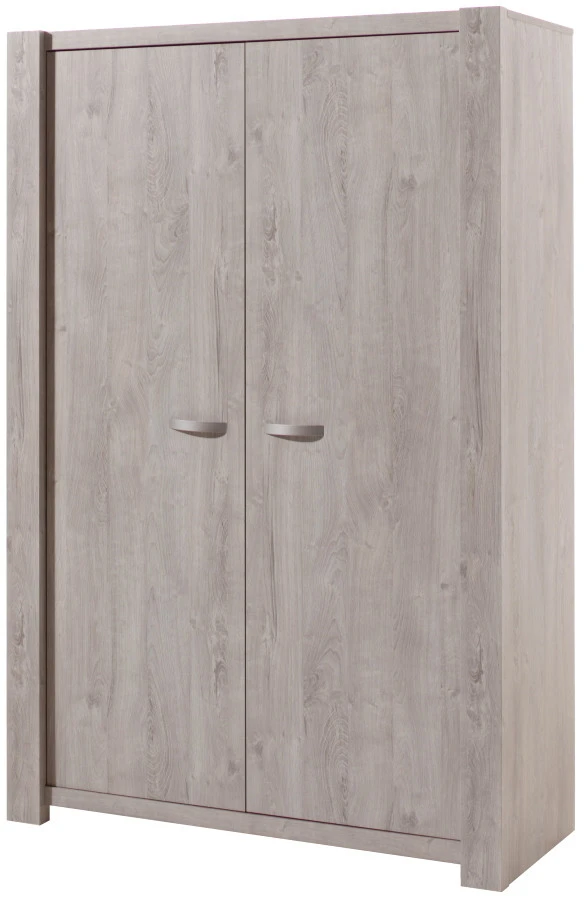 Deze kast heeft 2 openslaande deuren van grijs houtlook (ribbeck eik). De binnenkant bestaat uit een hanggedeelte en een aantal planken. 2-Deurskast Amalia is goed te combineren met de andere meubels uit deze collectie: een meegroei ledikant, nachtkastje en commode. Ook verkrijgbaar als 3-delige set.Â