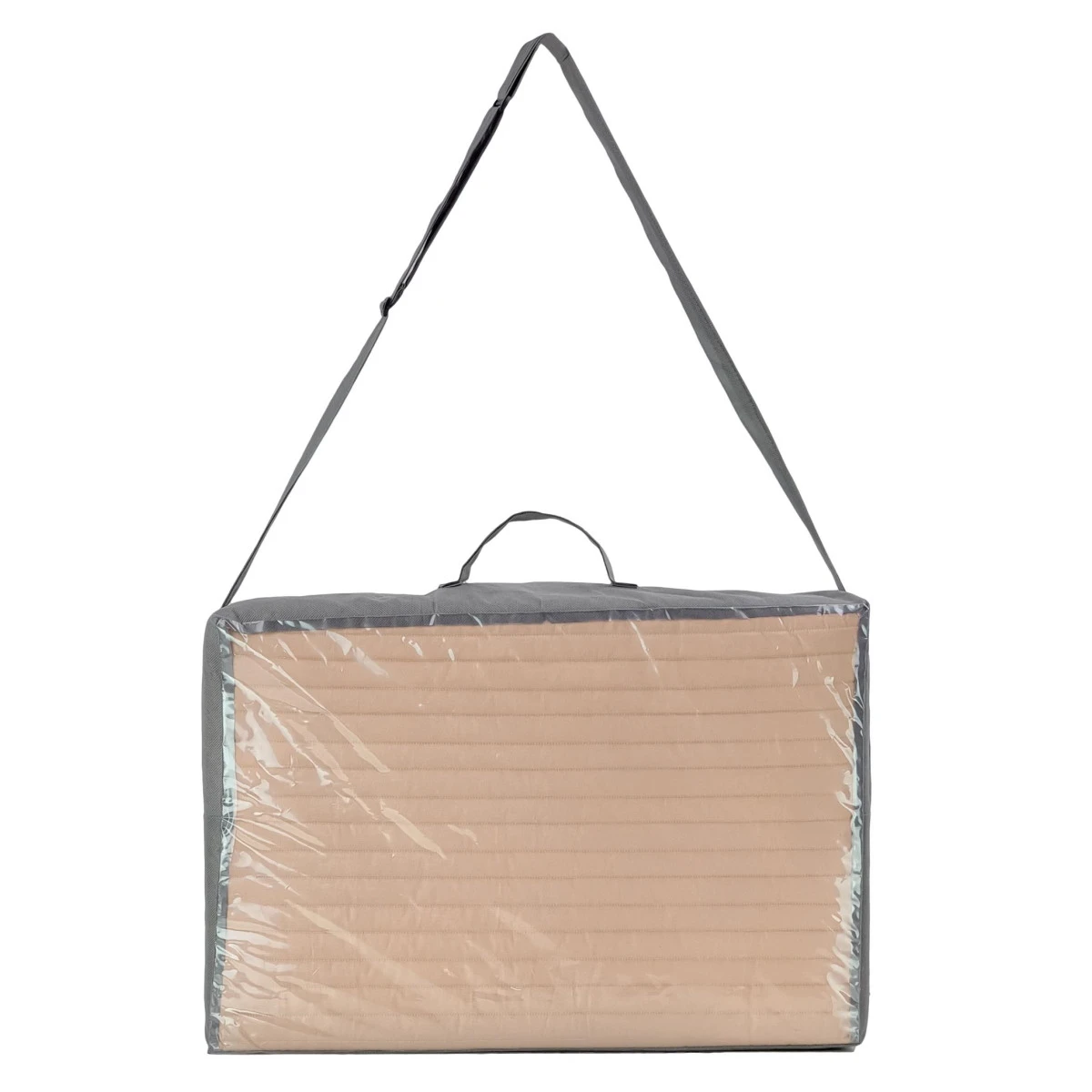 Het matrasje heeft een standaard maat van 120 x 60 cm en past hiermee in de meeste reis- en campingbedjes. Je neemt het matras net als een campingbed eenvoudig mee, hij is namelijk in drie delen opvouwbaar en te dragen met het handvat. Hij wordt tevens geleverd inclusief draagtas met schouderband om hem goed op te bergen en mee te nemen.