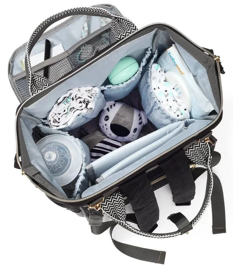 Deze tas heeft een groot hoofdvak waar veel spulletjes inpassen. Daarnaast is de tas uitgerust met maar liefst 12 verschillende vakken, waaronder een thermovak, vakje voor je telefoon en vakjes met gaas waarin je bijvoorbeeld speeltjes van je kleine kan stoppen. Het hoofdcompartiment van de rugzak heeft een ritssluiting. Er zit zelfs een handig koord aan deze rugzak waaraan je bijvoorbeeld je sleutels kan hangen.