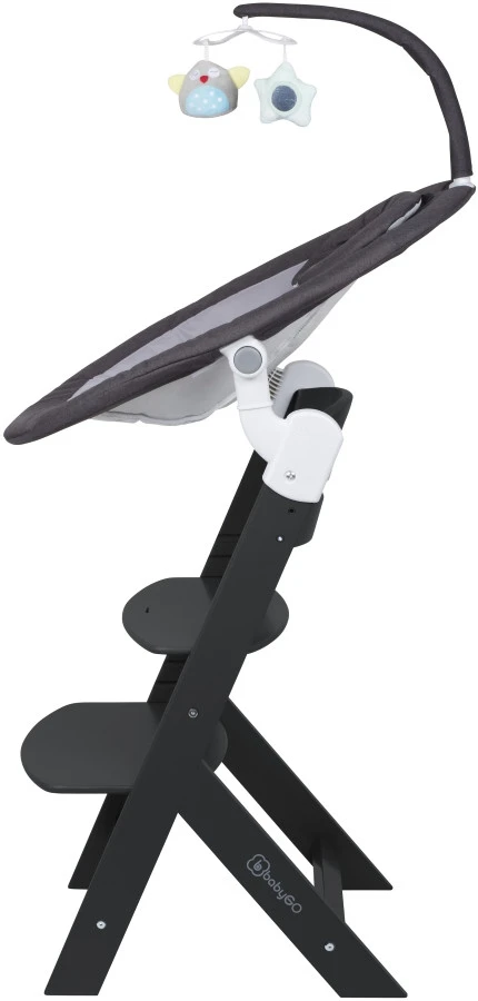 Daarnaast wordt de swing geleverd met een BabyGo Family kinderstoel. De swing is makkelijk op de kinderstoel te bevestigen met de adapters waardoor je je kleine hoger kan zetten om er zo beter bij te kunnen. Van deze kinderstoel is zowel de zitting als de voetensteun in 3 verschillende hoogtes te verstellen zodat er altijd een comfortabele positie voor je kindje te vinden is.