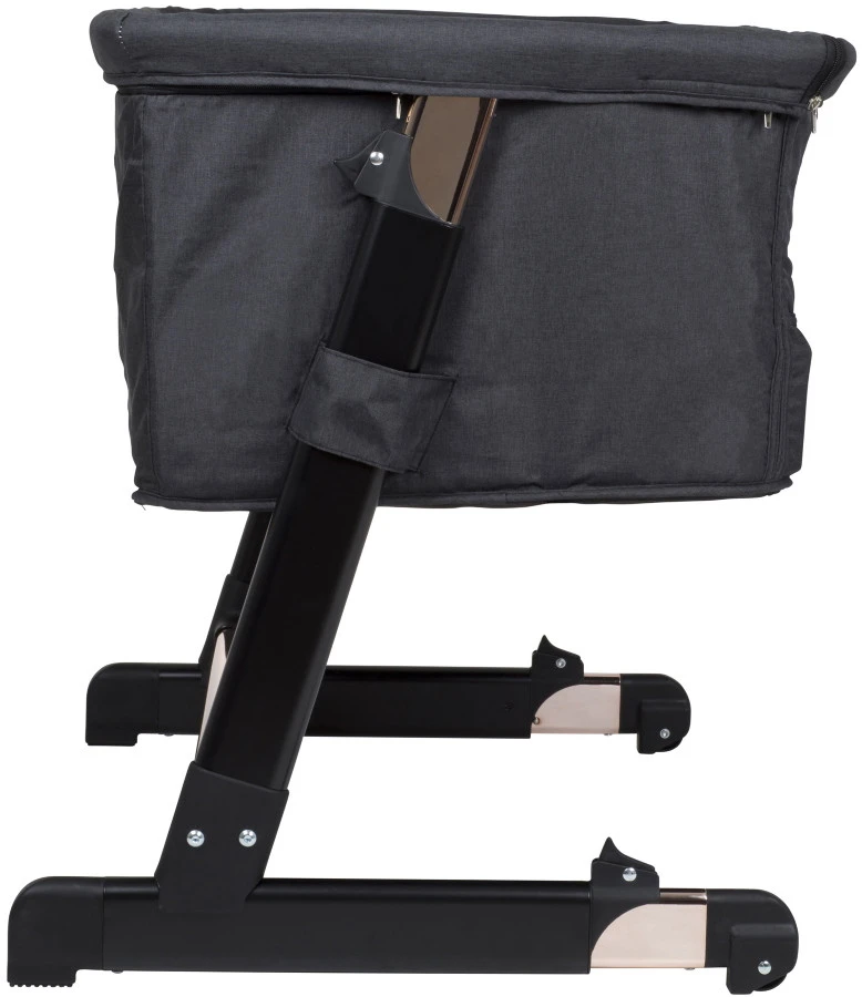 Dit mooie Babygo wiegje bevordert het samen slapen, waardoor je baby ’s nachts dicht bij je is en toch in zijn of haar eigen bedje ligt. Het wiegje is zwart van kleur met een roségouden frame, hij is eenvoudig te monteren en demonteren en de bekleding kan verwijderd en gewassen worden. Het grote voordeel van het wiegje is dat het mogelijk wordt om samen met je baby te slapen.