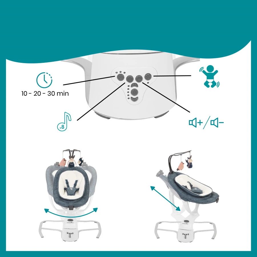 Je kindje komt heerlijk tot rust in deze Swoon Motion Babyschommel van Babymoov! De schommel kan zowel op en neer als heen en weer schommelen en heeft 5 snelheden die je kunt instellen. Ook is hij voorzien van een timer van 10, 20 en 30 minuten en een bewegingssensor zodat de schommel vanzelf aan gaat als je kindje onrustig is.Â