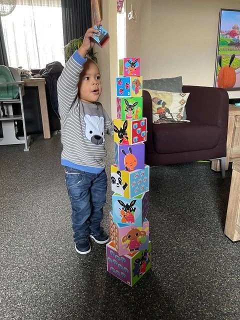 De Bing stapelkubussen zijn geschikt voor kindjes vanaf 18 maanden.