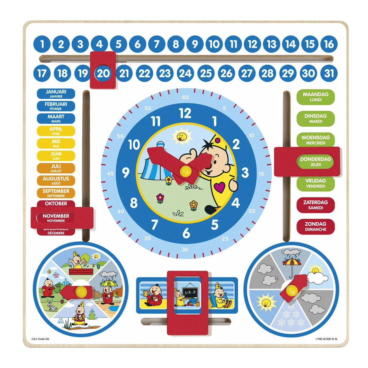 Wat een leuke kalenderklok van Bumba! Hierop kan je kleintje verschillende dingen leren. De datum en het weer zijn in te stellen. Ook leert je kleintje welk seizoen het is, de dagen van de week en maanden. Door de verschillende schuifjes en draaibare wijzers is de kalender aan te passen. Zo kan je kleintje leren klok kijken.