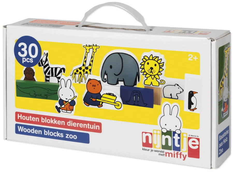 Je kindje zal urenlang zoet zijn met deze leuke houten blokken van Nijntje! Deze blokken hebben het thema dierentuin, wat betekent dat je kleintje goed voor alle dieren moet zorgen. Giraffen, een zebra, een olifant, een leeuw, een aap, een krokodil… Je kindje leert ze allemaal te herkennen!