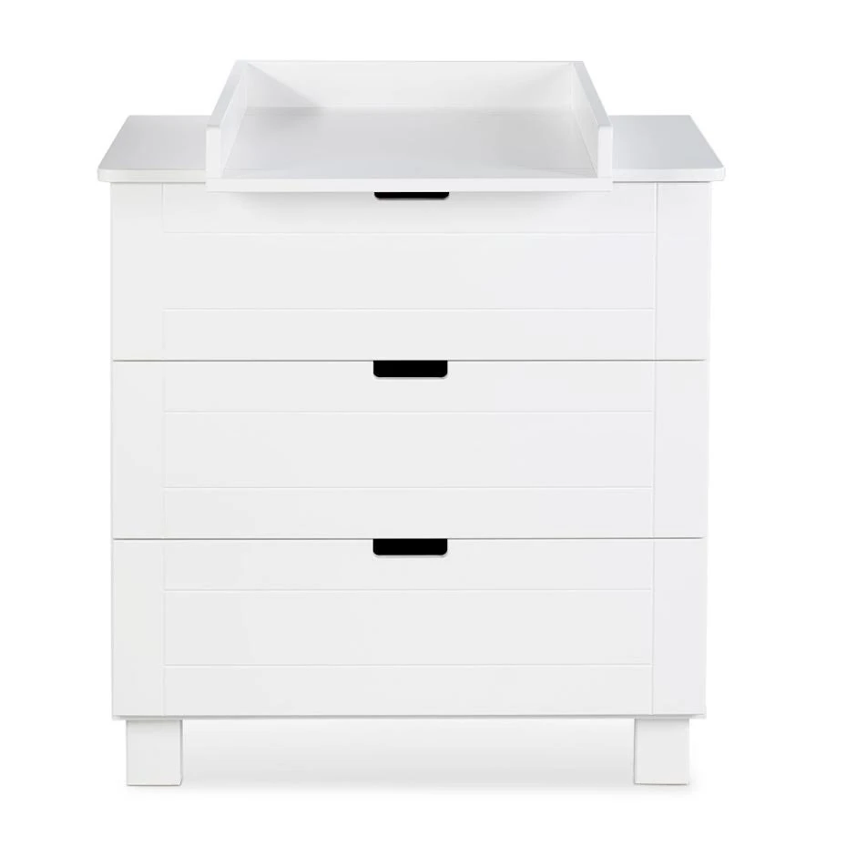 De commode Lieke is een stevige en praktische commode met een strakke witte kleur. De drie handige lades zorgen ervoor dat je altijd alle babyverzorgingsspulletjes makkelijk en dichtbij in de buurt hebt. Het commodeblad is afneembaar zodat je de commode later ook als ladekast kunt gebruiken in de kinderkamer.