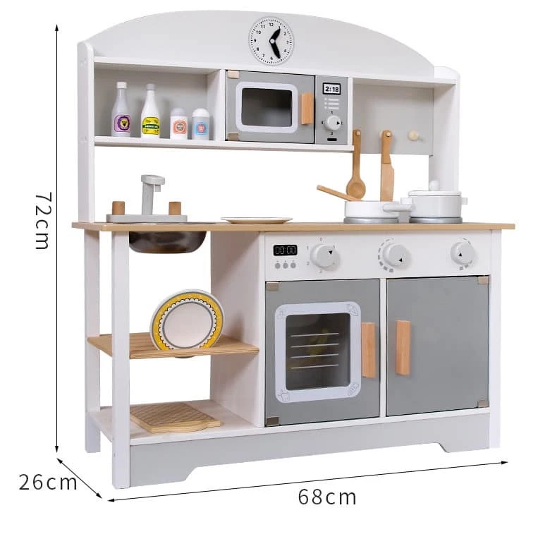 Je kindje wordt een chef met deze uitgebreide speelkeuken van Eco Toys! De keuken is gemaakt van stevig hout en heeft een moderne design, waardoor hij zeker niet misstaat in de woon- of speelkamer!Â