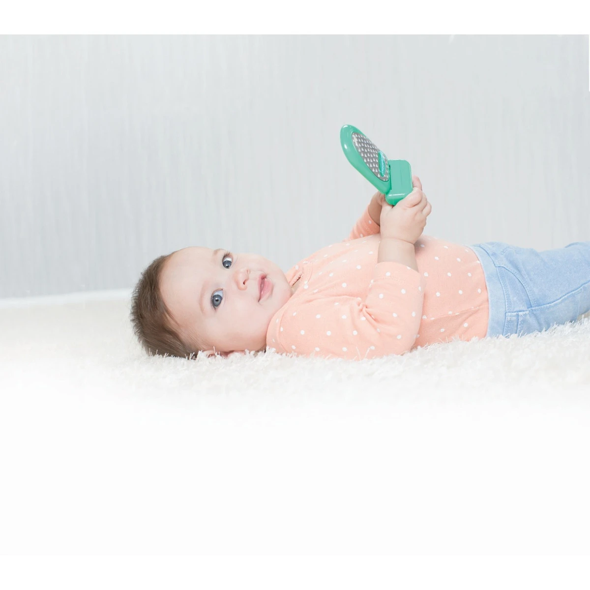 Klap de telefoon open en je maakt een ‘selfie’ door naar jezelf te kijken in het leuke spiegeltje. De telefoon is gemakkelijk vast te pakken voor kleine handjes. Als je kleintje op de toetsen drukt zullen er leuke geluidjes klinken. Voor de echte slimmeriken spreekt de telefoon ook enkele zinnetjes, dat is leuk kletsen zeg! Een leuk cadeautje voor de echte kletskous in de dop dus!