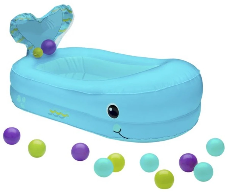 Heerlijk spetteren in dit opblaasbare Infantino badje in de vorm van een Walvis! Dit badje is perfect voor de overgang naar het grote bad. Zo kun je dit badje in het midden van je bad plaatsen!