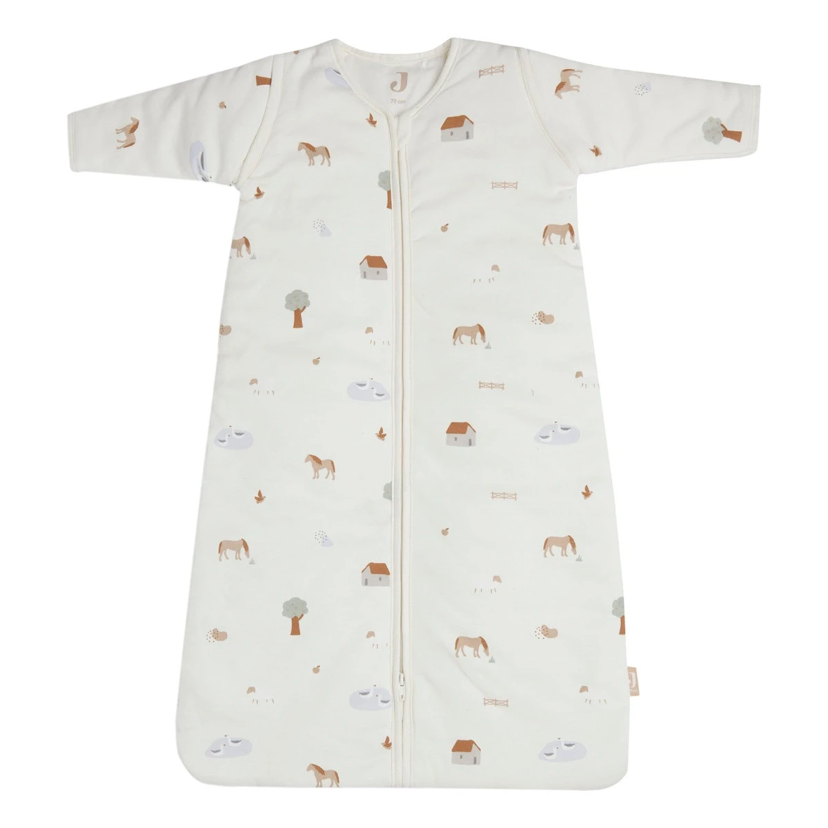 Je kindje zal heerlijk kunnen slapen en er ook nog eens extra knap uit zien in deze hippe slaapzak van Jollein. De slaapzak heeft een mooie witte kleur met een lieve boerderijprint. Super schattig!
