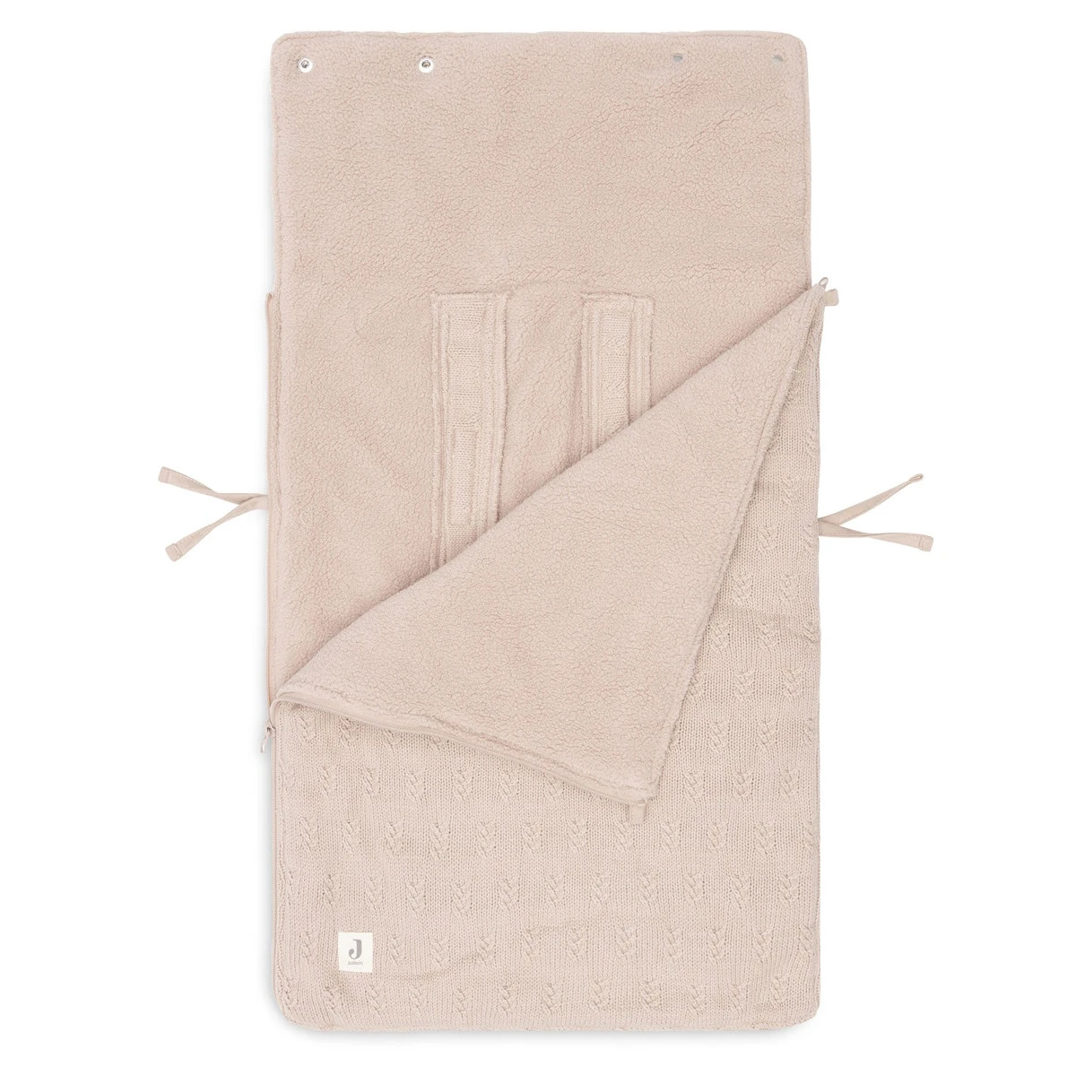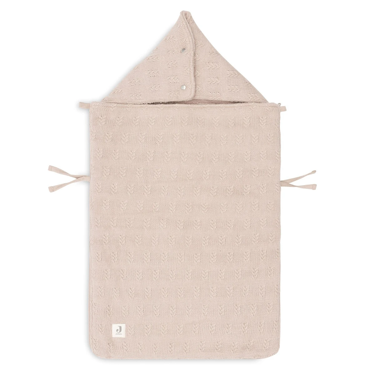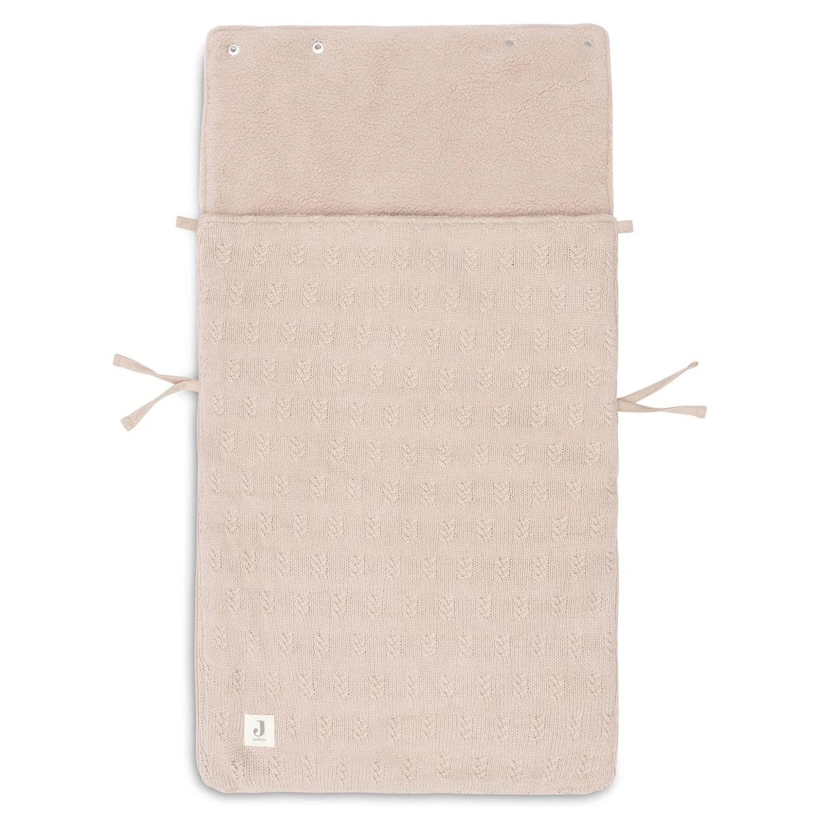 Deze comfortbag komt uit de Grain Knit collectie van Jollein en heeft een gebreid patroontje aan de buitenkant en zachte fleece aan de binnenkant. Daarnaast heeft de voetenzak een capuchon die je kan dicht maken door middel van drukknoopjes. Zo krijgt je kindje het niet koud tijdens de reis.Â