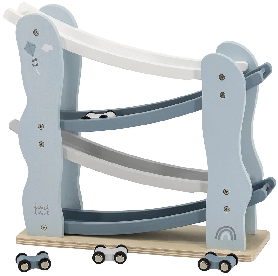 Je kleine zal urenlang speelplezier beleven met deze houten autobaan van Label Label! Zet de autootjes één voor één bovenin de autobaan en laat ze naar beneden racen! Er worden 4 autootjes meegeleverd, zo kan je kleine goed in de gaten houden welke als eerst beneden is.