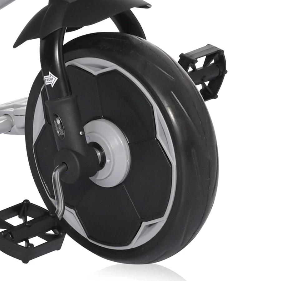 Aan de achterkant van de driewieler kun je makkelijk een duwstang (90-95cm) bevestigen waar je je kindje op de driewieler mee rond kunt duwen. Dit is erg leuk wanneer je graag wandelingen maakt en je kindje snel moe is of wanneer je kindje nog niet goed (zelfstandig) kan fietsen. De duwstok heeft twee standen en aan het handvat zit zelfs een bekerhouder! Wanneer je je kleine duwt met de duwstok, kan je kindje makkelijk zijn/haar voeten veilig op de voetensteun zetten, deze zit aan de onderkant van de driewieler en kun je in- en uitklappen. De stoel is 360º te draaien zodat je kindje met zijn/haar gezicht ook richting jou kan kijken.