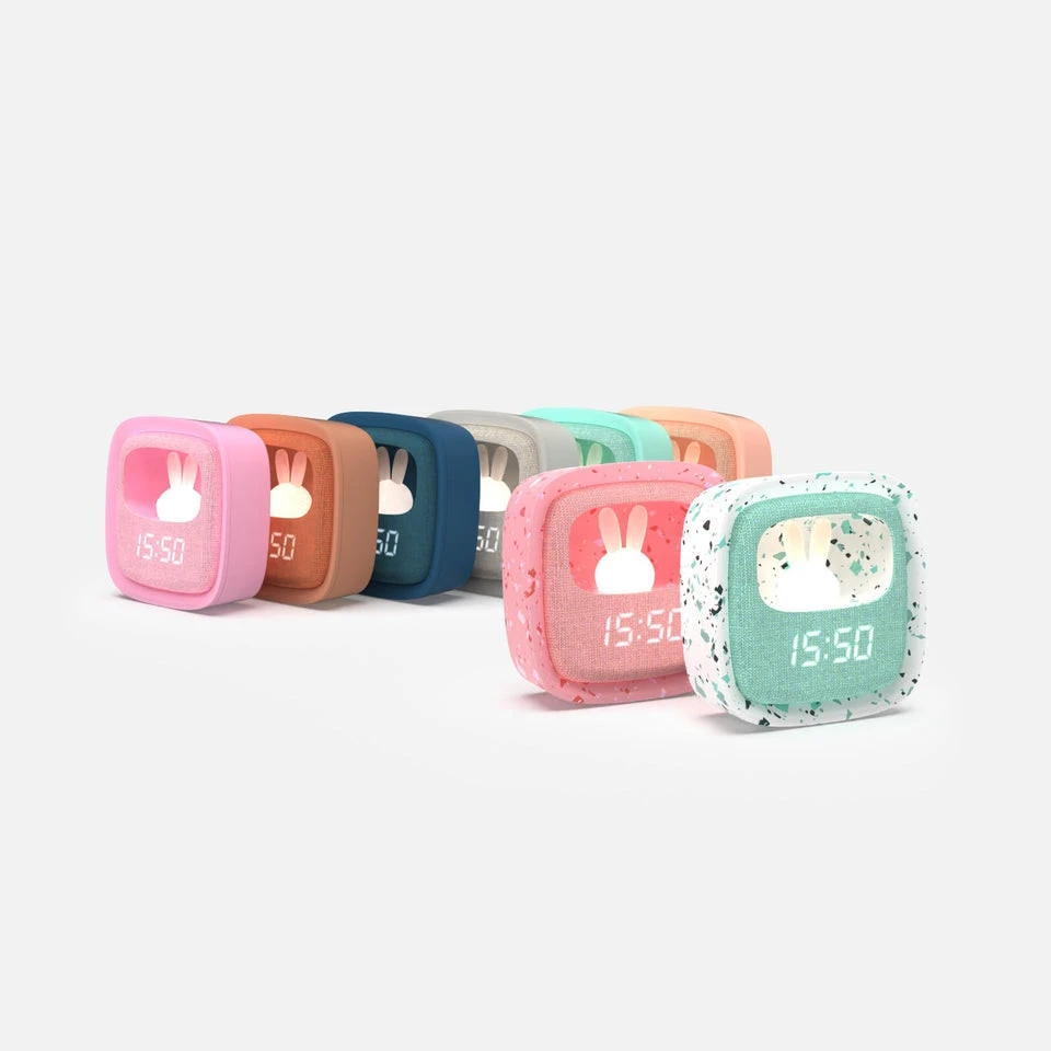 De wekker is tevens voorzien van een superschattig nachtlampje in de vorm van een lief, klein konijntje. De wekker is voorzien van een oplaadbare accu (micro USB, 5V) waarmee je tot 14 uur lang voorzien bent van de juiste tijd en een kalmerend lampje. Voldoende tijd dus voor de langste dutjes!