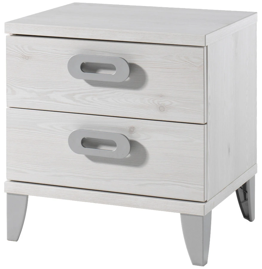 Nachtkastje Liv is niet alleen praktisch maar staat ook mooi in iedere babykamer! Het nachtkastje is licht houtlook van kleur en heeft een zilveren grepen. Het kastje heeft 2 lades.