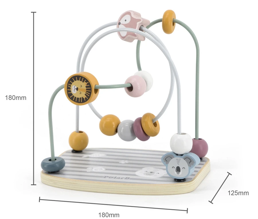 Je kleine kan lekker spelen met deze houten kralenspiraal van PolarB. Met verschillende vormen, diertjes en pastelkleuren trekt hij zeker de aandacht!