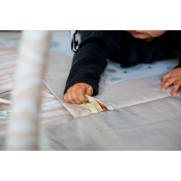 Is je kindje uitgespeeld? Maak binnen een handomdraai een opbergtas van het speelkleed! Vouw de zijkanten naar binnen en maak ze vast met de touwtjes. Al het speelgoed kan in de tas worden gestopt en gemakkelijk worden opgeborgen of meegenomen aan de hendels. Je kunt hem ook gebruiken als opbergmand. Super handig voor onderweg, een bezoekje bij opa en oma of lekker voor in huis.