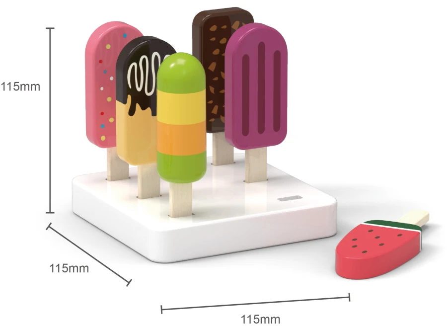 De vrolijk gekleurde en versierde ijsjes worden geleverd met een handige standaard waar je de ijsjes in kunt plaatsen. De ijsjes zijn geschikt voor kindjes vanaf 3 jaar en dragen bij aan de ontwikkeling van de fantasie van je kindje.