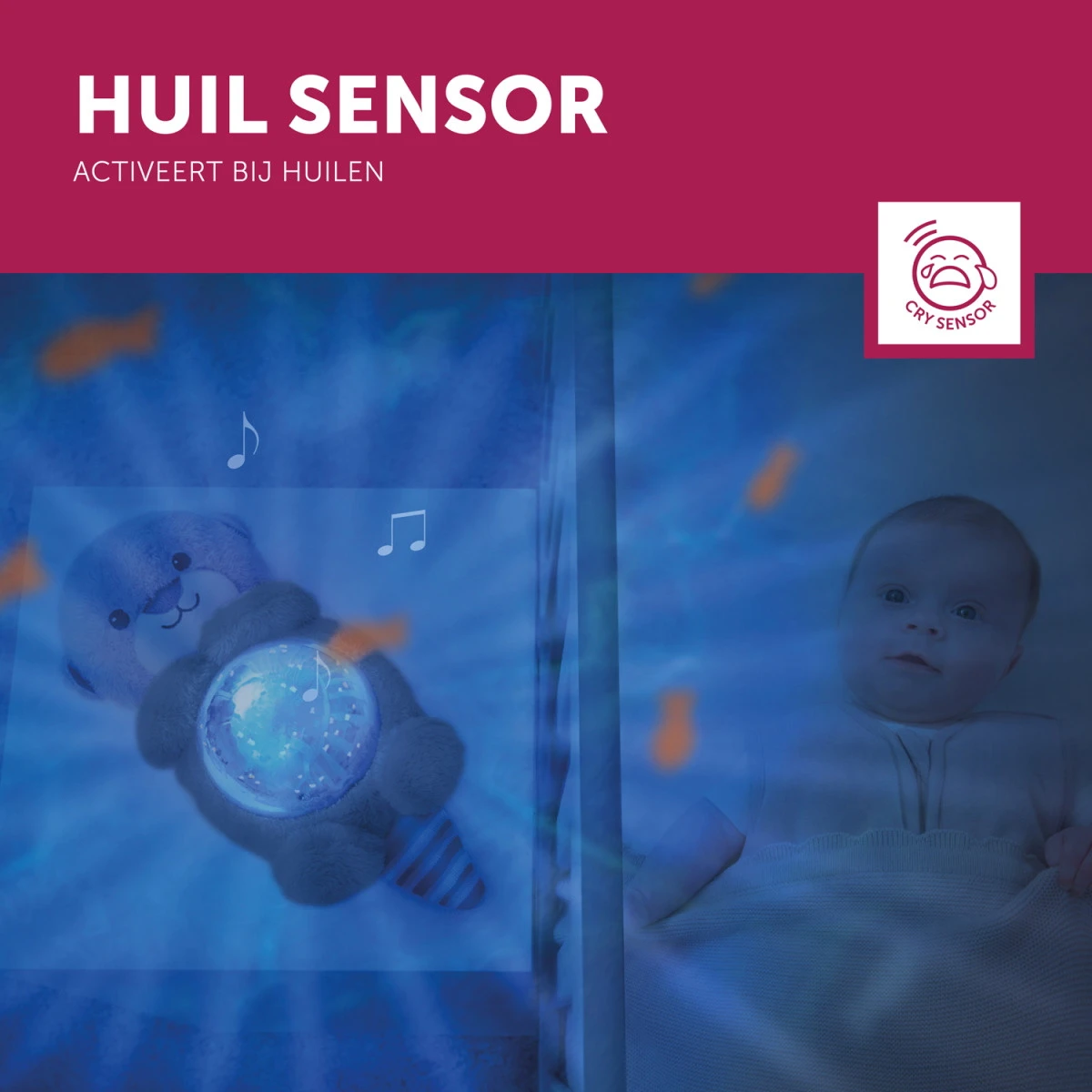 Met Otto de Zeeotter oceaan projector verander je de kamer van jouw kleintje in een magische onderwaterwereld. Zwemmende vissen en bewegende golven die geprojecteerd worden in de kamer zorgen, samen met de oceaan geluiden, voor een kalmerende sfeer in de kamer zodat je kleintje heerlijk in slaap kan vallen.